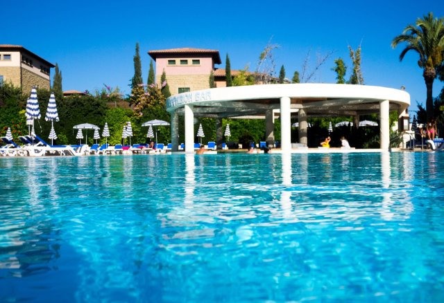 The St Raphael Resort is located on one of the most renowned and largest Blue Flag accredited beaches in Limassol. The clear blue sea water and sandy beach, ensure that all guests can enjoy a dip in the Mediterranean sea and relax by the calm waves. For those guests who prefer fresh water, the hotel features two outdoor free-form swimming pools and one indoor pool. One of the outdoor leisure pools features the Amphibion Wet/Dry Pool Bar while the second outdoor pool in the new Executive Wing has its own water slide and separate shaded children's pool.
